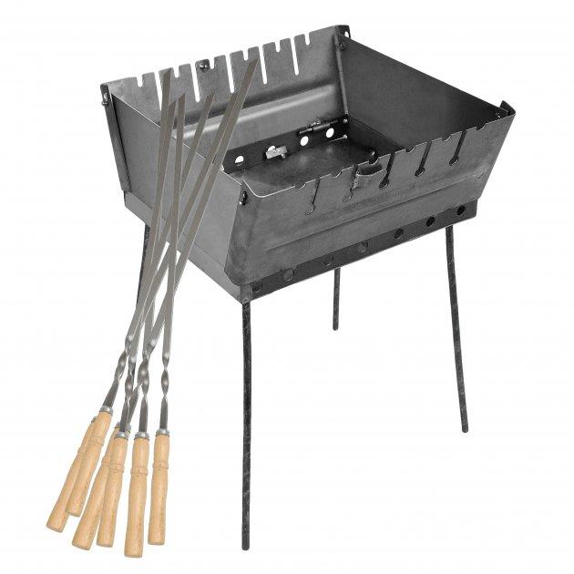 Мангал розкладний 6 шампурів - дуже якісна і неймовірно компактна валізка, яка розкладається в мангал! Безперечна перевага цього мангалу, крім його компактності, має великий запас надійності! Матеріал, з якого виготовлений мангал, дуже якісний - гарячекатана сталь завтовшки 2мм. Завдяки використанню такої технології та високій товщині металу даний мангал витримує вплив високих температур без зміни початкової форми.
